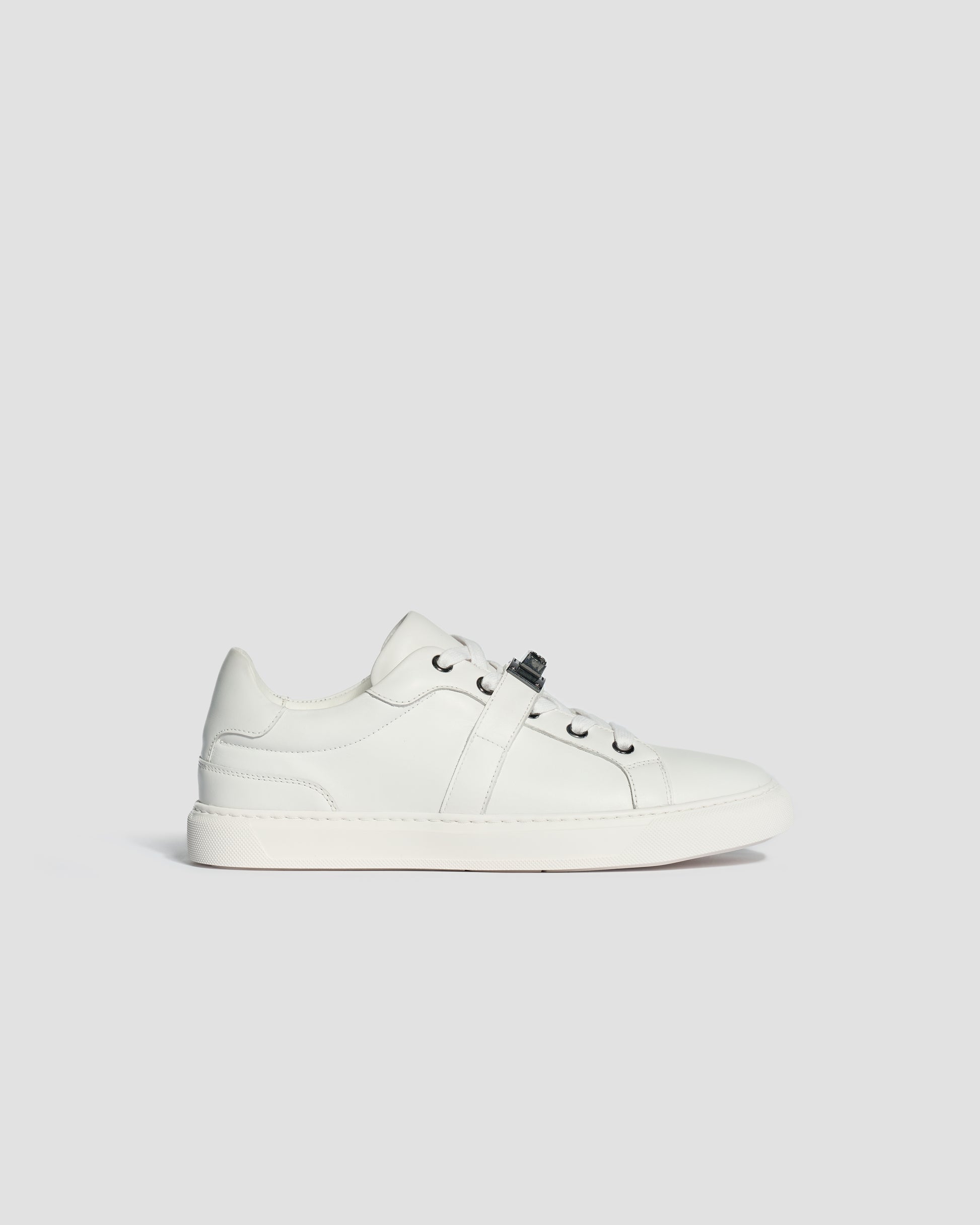Effortlessly sleek and built for impact, these crisp white sneakers blend minimalism with a bold twist. These sneakers feature the classic lace-up fastening and an elevated strap detail. The standout dark gunmetal twist lock with the signature GF engraving on top adds a touch of refined edge to this modern elegance.