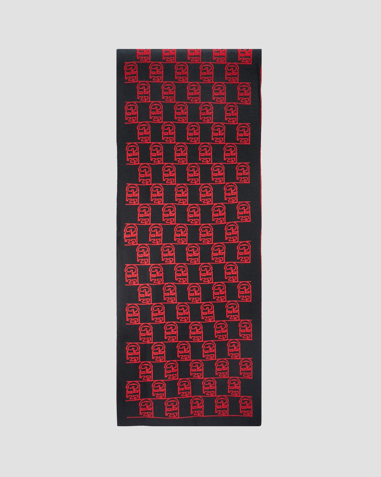A dash of contemporary accent to ensembles. This scarf is detailed with GF all-over with contrasting effect to both sides.