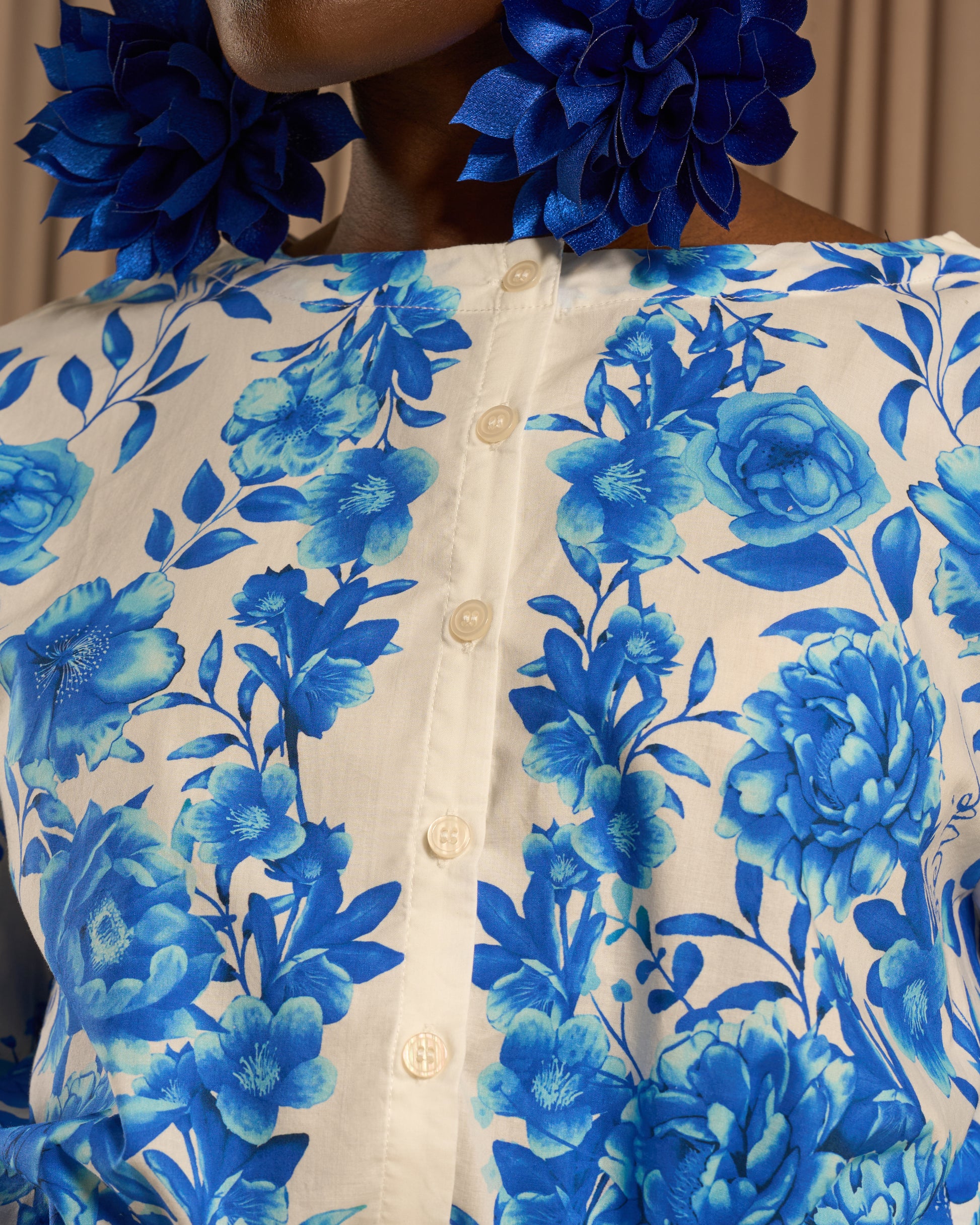 A delicate balance of structure and fluidity. This shirt features a vibrant print, infusing a touch of romantic charm into its tailored silhouette. The sleeves and crisp neckline add a polished appeal, while the adjustable drawstring hem cinches the waist for a flattering, customized fit.