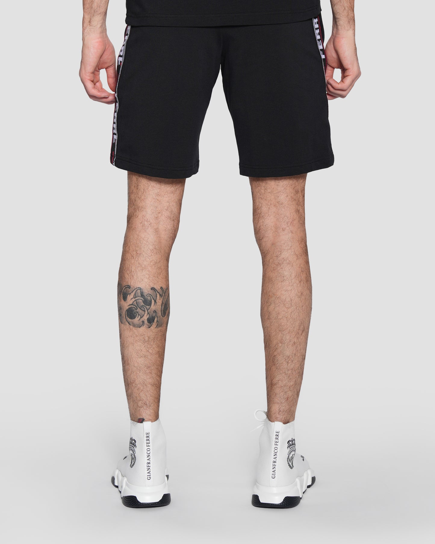 This Contrast Logo Taping Shorts in black features the Gianfranco Ferré logo jacquard taping with contrast red and white coverseam stitch detail on side seam from waist to hem. Perfect for casual occasions or activewear. Pair with a matching top or jacket for a coordinated look.