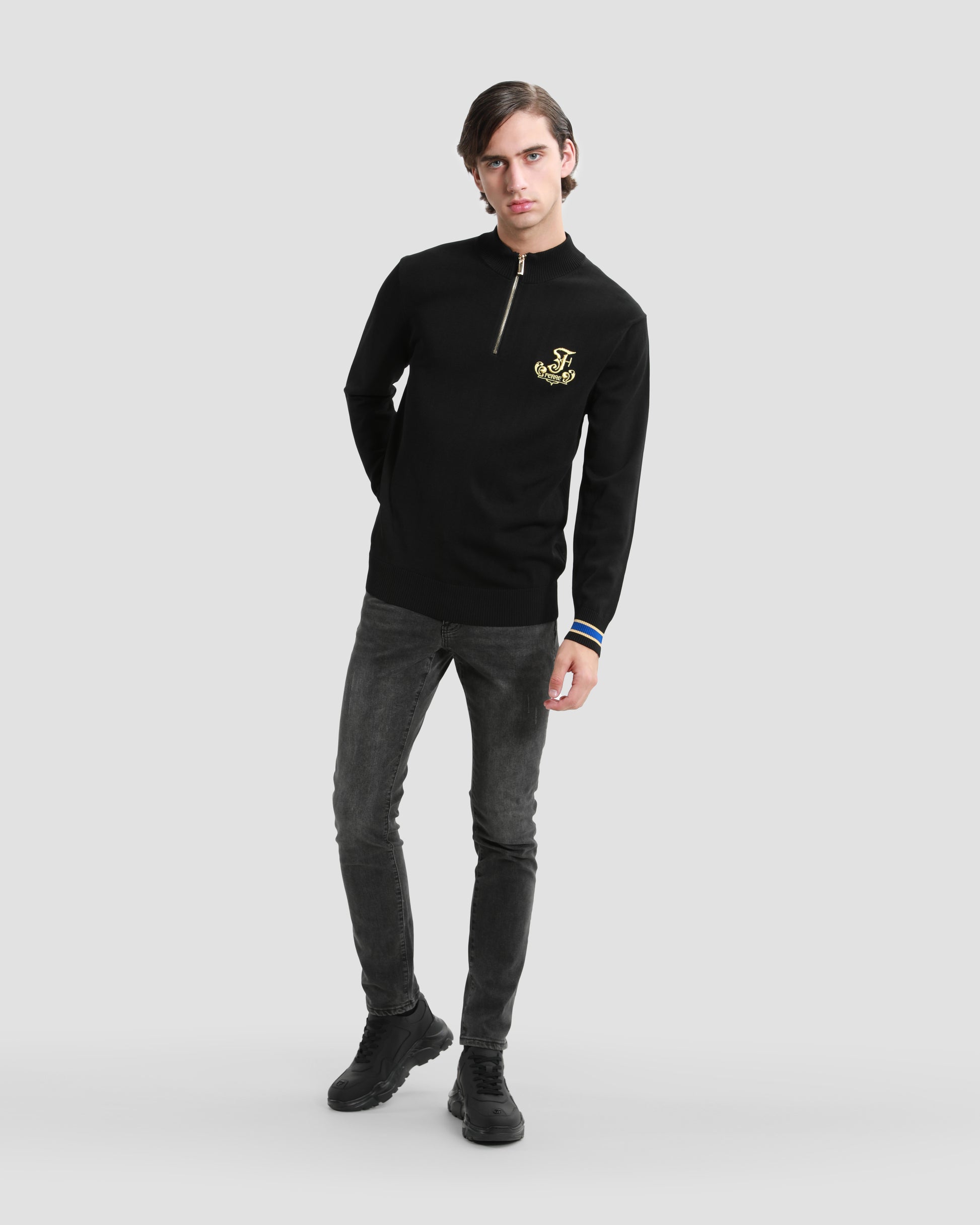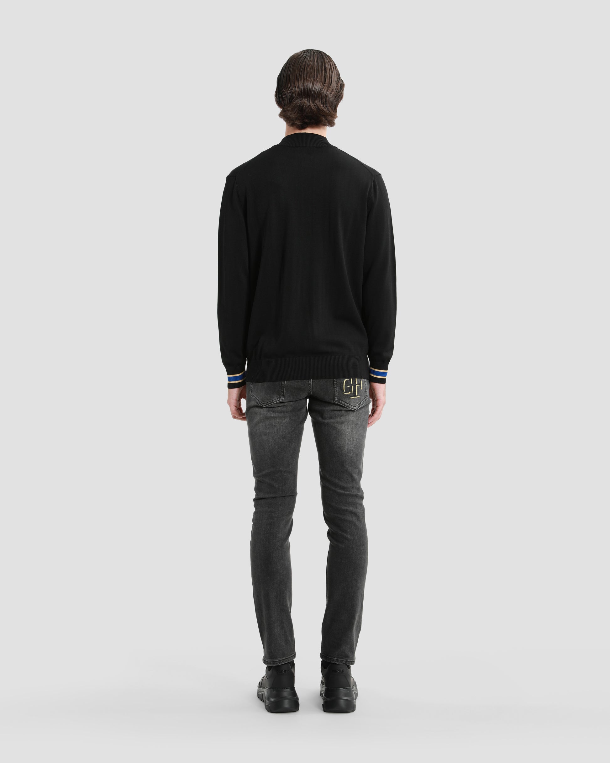 Don a classy take on collegiate aesthetic with this piece. It features an embroidered branding to chest and a contrast-toned collar and cuffs.