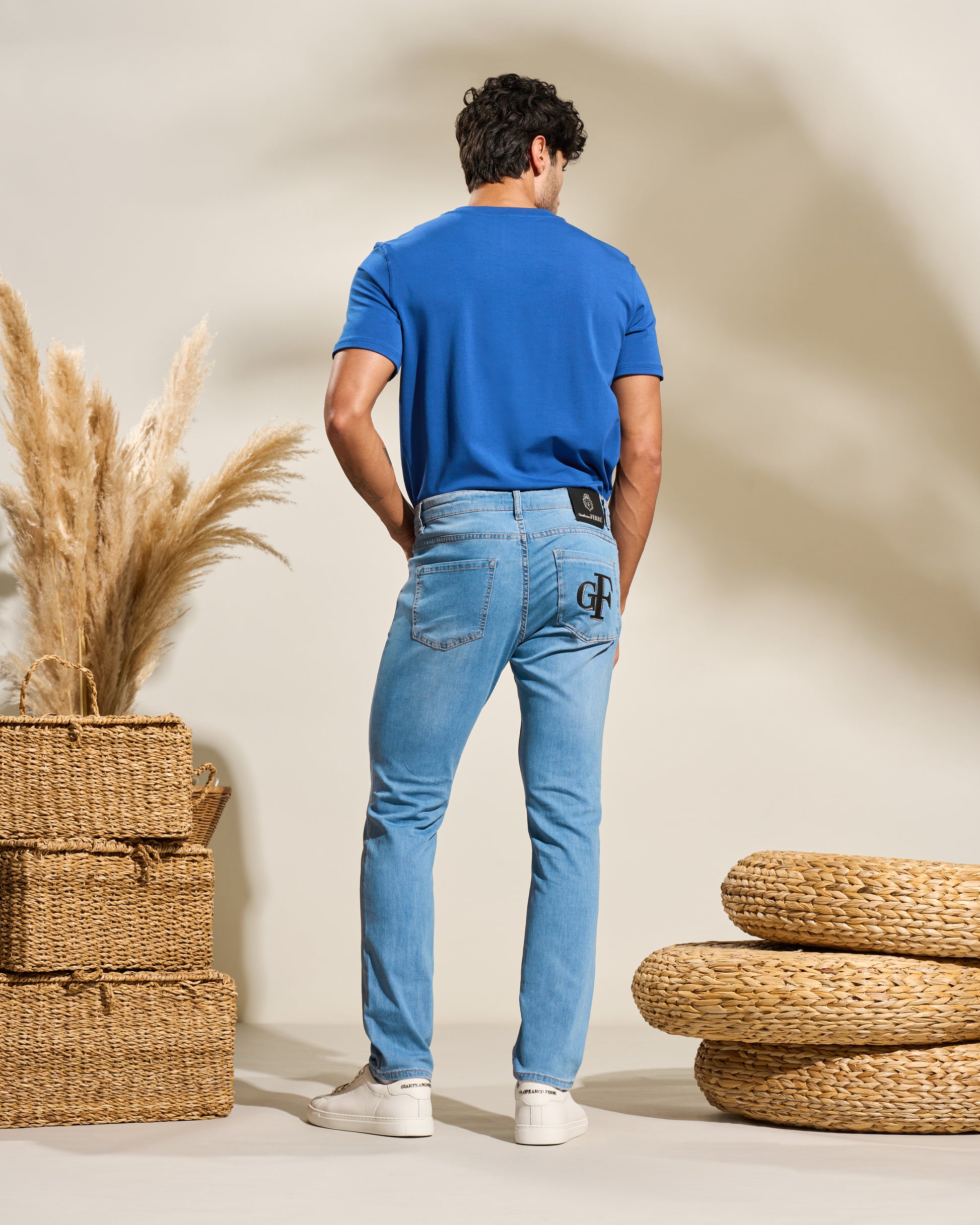 Elevating a casual essential, these slim-fit denim jeans are crafted from a premium cotton-stretch blend for comfort and flexibility.