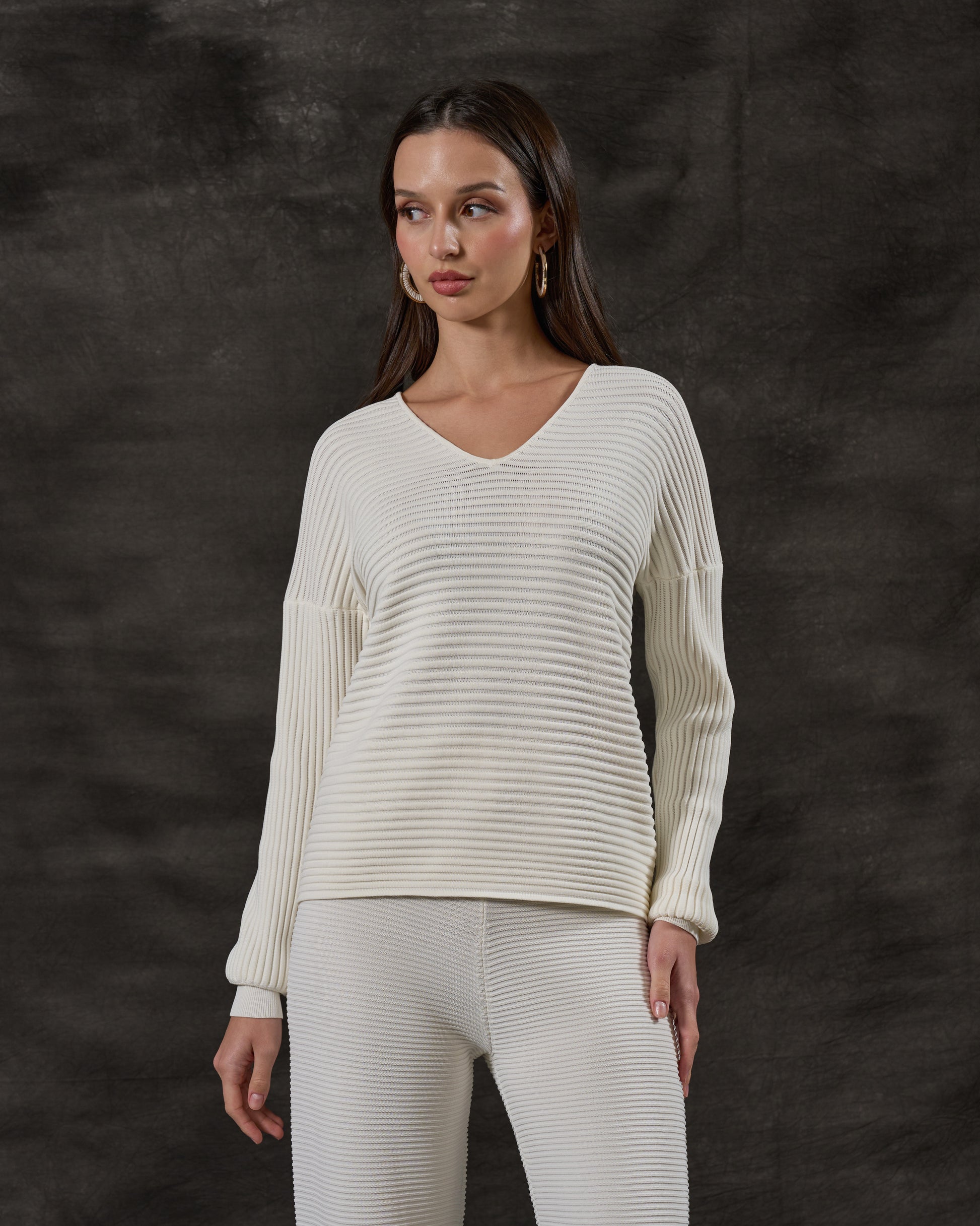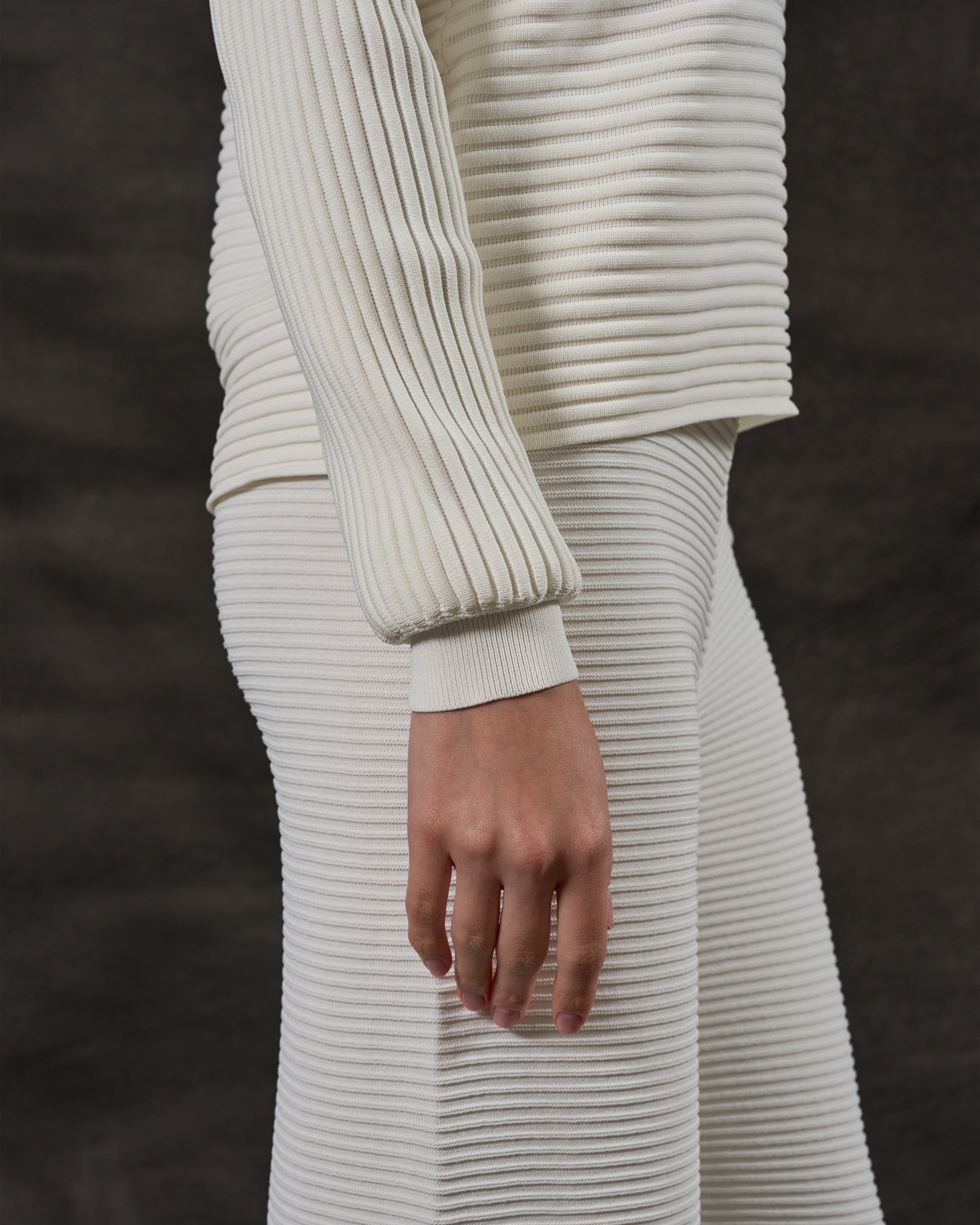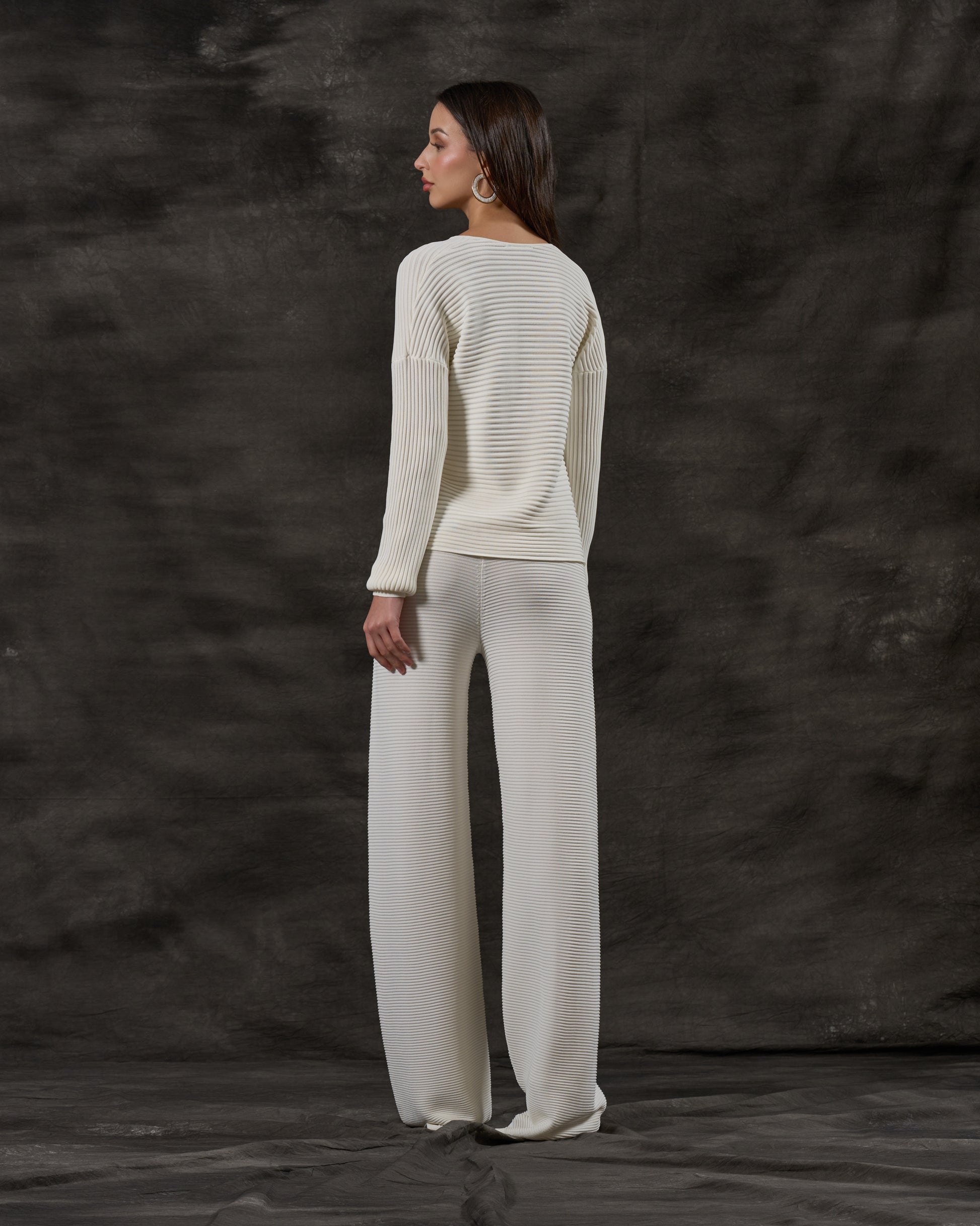 Minimal texture, maximum elegance. This off-white ribbed knit delivers effortless sophistication with a lightweight, breathable feel perfect for all-day wear.